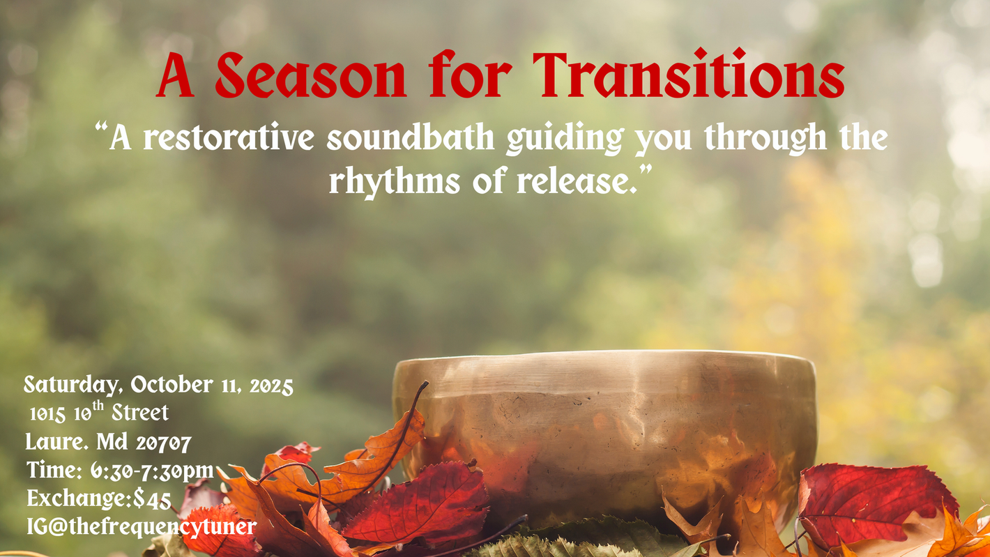 🍁A Season for Transitions This sound bath is about tuning into the beauty, serenity, and wisdom of Autumn. Every breath, every tune, and every intention will connect us to all that is necessary for this transition. We are moving from the hot, up-tempo energy of summer into the chill, reflective, and soothing essence of Autumn. As the leaves change colors and fall with such grace, we are reminded that we to can embrace change with such ease. “Autumn shows us how beautiful it is to let things go.” Only 8 tickets are left! So, book soon. Look forward to seeing you there😉 Click link below to book. https://my.allevents.in/Atimefortransitions Or Visit www.wclectik5healing.com #soundhealing #soundbathmeditation #soundbath #soundtherapy #singingbowls #autumn #transitions #release #frequency #vibration #energyhealerButton